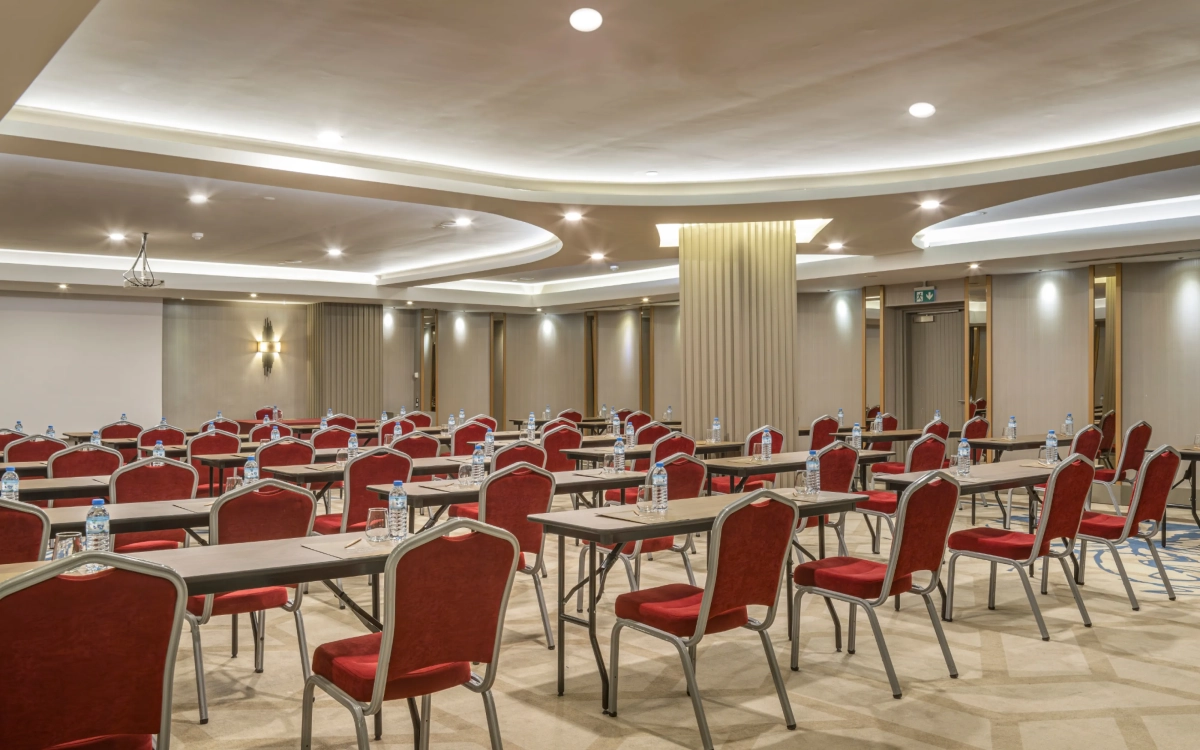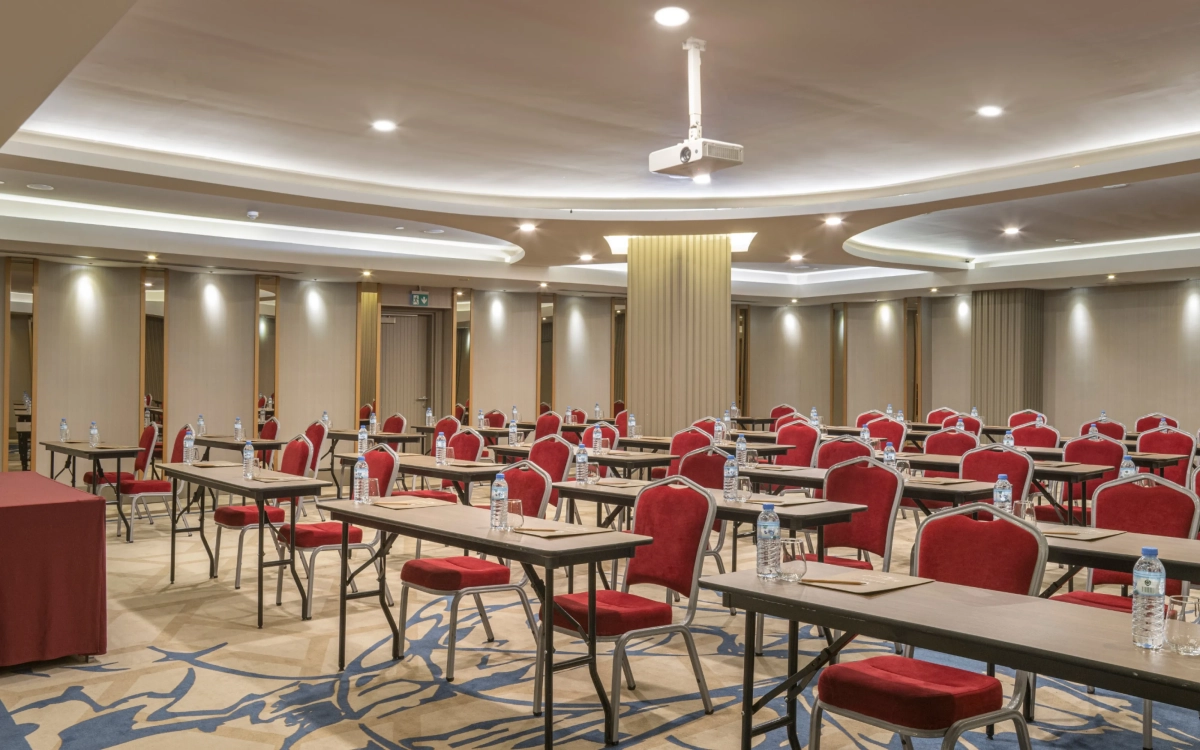 Высота нашего зала Роза составляет 2,90 м, площадь 180 м2.