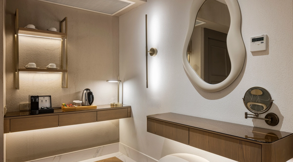 Шампанское, корзина с фруктами и сладостями в номере по прибытии, однократный завтрак в номер и свежевыжатый апельсиновый сок.