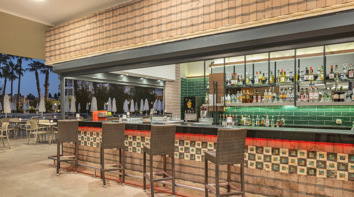 В летний сезон с 10.00 до 24.00 к вашим услугам бар у бассейна, расположенный с правой стороны, со всеми видами коктейлей и напитков. В летние месяцы в баре вы можете найти бесплатное мороженое с 11.00 до 11.30 и с 15.00 до 15.30. Кроме того, в зависимости от погоды, бесплатный буфет с десертами и кофе к вашим услугам с 15.30 до 17.00 в баре у бассейна или в Винном баре.